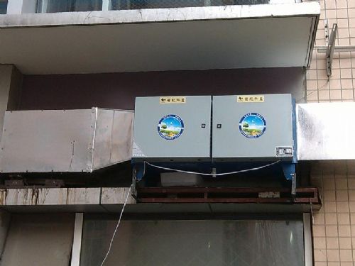 高碑店市馨云环保设备有限公司生产的低温等离子加动态拦截油烟净化器一体机在油烟空气净化设备前端的空气入口处..