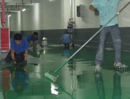 施工:将环氧树脂材料加入适量的石英砂,耐磨粉用镘刀镘涂成一定厚度的平整密实层,增强地面的耐压及抗冲击性能;