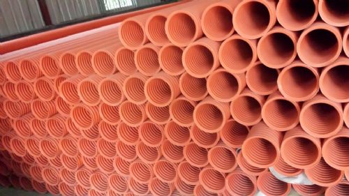 适用于电力控制电缆,通信光缆,电缆埋地保护. HFB电力管产品优越性:质量可靠,节约成本,重量轻,环钢度高,施工便捷,在等负荷条件下,MPP单壁波纹管只需要较薄的管壁就可以满足要求,与同规格环刚度要求的MPP实壁管相比要节省40-70%的材料费用. 嵌入式橡胶密封圈卡口连接,防脱落和密封性能好,必要时可焊接,基本没有工程维修费用.