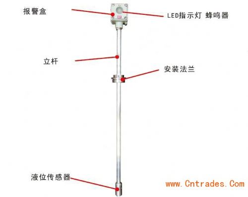 适用于大型储罐,为液体灌装提供保护。当罐装液位升至探杆所在高度时,发出声光报警,提醒工作人员注意,以避免过量充装。