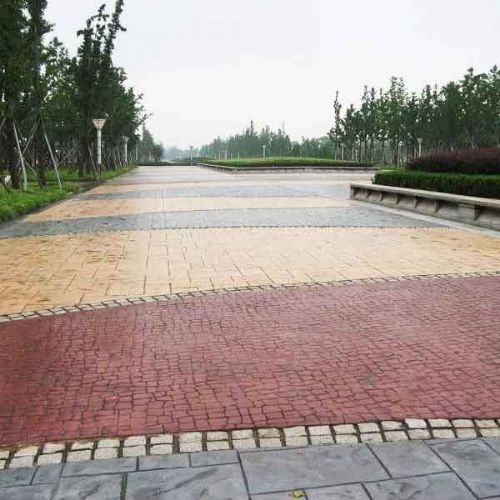 2. 用硬化剂材料制作的彩色压模地坪具有抗耐磨、防滑、抗冻、不易起尘、易清洁、高强度、耐冲击、且色彩和款式方面有广泛的选择性、灵活性、成本低和优质环保等特点,是目前园林、市政、停车场、公园小道、商业街区和文化娱乐设施领域的理想选择。