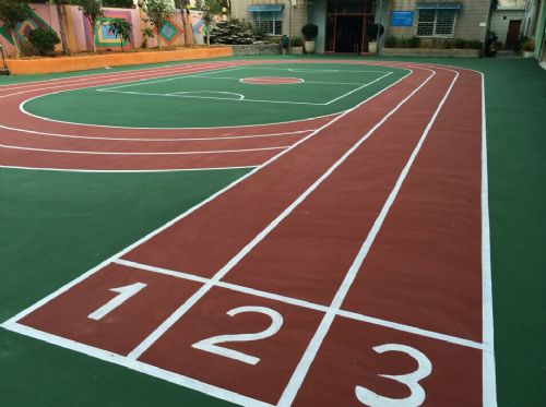 复合型塑胶跑道概况 面层:聚氨酯跑道耐候性漆+EPDM颗粒 底层:聚氨酯跑道底料 复合型塑胶跑道具有弹性..