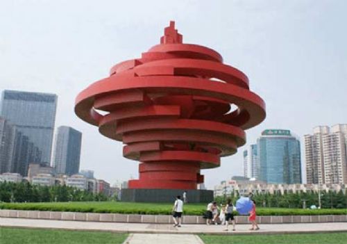 主题性绽放景观雕塑通过雕塑的形象在特定环境中揭示某些主题,它同环境有机结合,可以充分发挥景观雕塑和环境的..