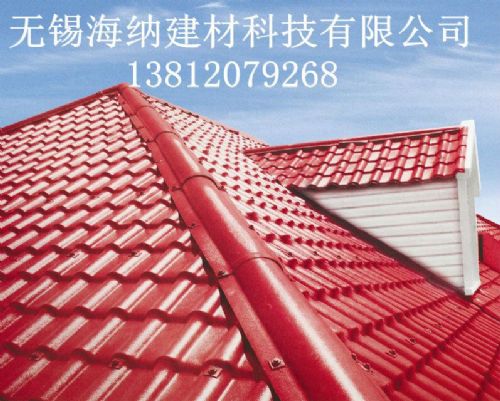 又称平改坡树脂瓦、树脂琉璃瓦、仿古树脂瓦等。无锡海纳合成树脂瓦,选用进口耐候性ASA树脂和PVC双层共挤成型,结合现代工艺技术仿古设计而成的。它的重量比较轻、强度大,防水、隔热、阻燃等性能都比较好。是各种建筑屋面的理想材料。现我国主要应用于平改坡工程。海纳合成树脂瓦是继浪板瓦、塑钢瓦、之后出现的新型的瓦制品。