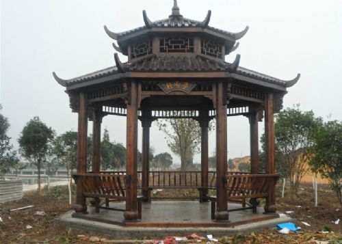 1. 顶盖采用三层防水处理,*上层的顶层板采用直板叠压做法或是仿琉璃瓦片的做法。中间镀锌钢板起到防雨功能,底层采用薄插接板防止因热胀冷缩引起内顶开裂,顶盖再安装上封雨的脊瓦和宝顶,该结构防雨防潮效果俱佳,又不易变形。工艺复杂,要求精细度极高。