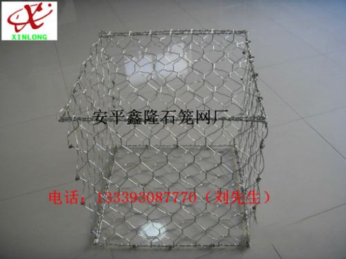 固滨笼是金属线材编织的角形网(六角网)制成的网箱,使用的金属线径是根据六角形的大小而不同。如果是金属镀层的金属线六角形,则使用线径为2.0mm到4.0mm的金属线,如果是PVC包覆的金属线编织的六角网,则使用外径为3.0mm到4.0mm的PVC(金属)线.外框边缘的线则使用比六角网线粗一号的线。箱型石笼由大规格六角网联结而成,施工中只需将石块装入笼中封口即可。