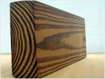 边材近白至淡黄、橙白色,心材明显,呈淡红褐或浅褐色。含树脂多,生长轮清晰。海湾油松早材带较宽,短叶松较窄,早晚材过渡急变。薄壁组织及木射线不可见,有纵、横向树脂道及明显的树脂气味。木材纹理直但不均匀。