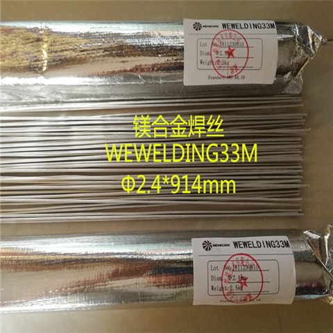 特性:WEWELDING33M是一种特种镁合金焊丝,适用于气焊和TIG氩弧焊锻造镁合金,铸造镁合金的焊接,对于常见镁合金具有很好的抗裂性能,焊层可以适宜于热处理。