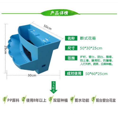 功能:花盆双层种植,观赏面更广,当两只花箱左右组合后,可以骑在护栏上,根据护栏宽度可以自由调节,立体效果更强 - 安徽省朗汀园林绿化工程服务有限公司