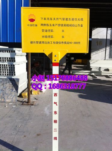 标志桩的使用象征我国文明建设的不断提升,同时促进了我国重大工程建设的顺利进行,提高我国经济的效益。标志桩的使用范围非常广泛,常用于电力、通信、燃气、自来水、铁路地埋管线路径指示标志。用于户外、绿化带、灌木丛、顶管两侧管线路径指示。河北帝智电力器材有限公司生产的标志桩厂家直销质量有保障,而且颜色比较鲜艳,常见的黄底红字或者是白底红字两种标志桩。具体还可以根据客户的需求进行定做。 - 河北帝智电力器材有限公司