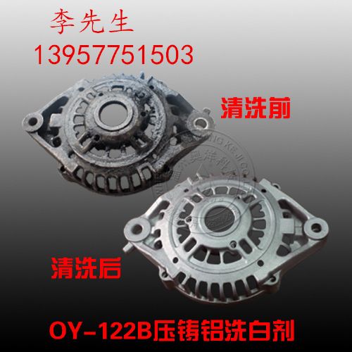 本品系常温条件下使用的高硅铝合金酸性除油脱脂洗白剂,它是由多种复合酸、乳化、分散、清洗材料科学配制而成,浸渍及超声波配套清洗,可将硅铝压铸件及喷砂(抛丸)后的高硅铝合金表面的黑皮清洗干净,经过烘干即可得到光亮清洁的外表,而且不影响加工口(车、钻)的光洁度。