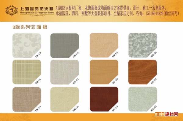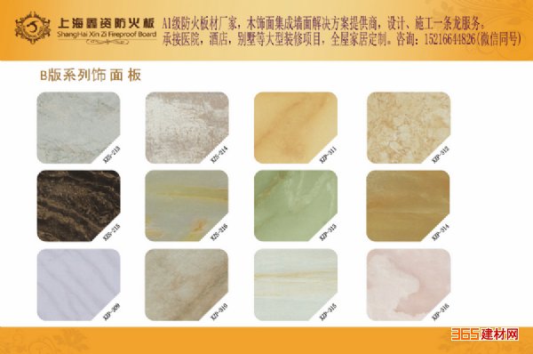 鑫资品牌系列防火玻镁板,有木纹系列,仿制大理石纹系列,艺术系列。产品适用于KTV,酒店,宾馆,会所,浴场等内墙装饰。产品表面光滑平整,不宜褪色,环保健康,色彩丰满诱人,不易划伤,方便除尘,防水隔音,耐酸抗腐,豪华时尚。