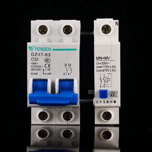 过欠压脱扣器 MV+MN 230V 过压值Uvo=270V±5% 欠压值Uoe=170V±5% 当220V额定电源电压上升到275±5%或下降在170±7V时,使断路器脱扣,实现线路保护。