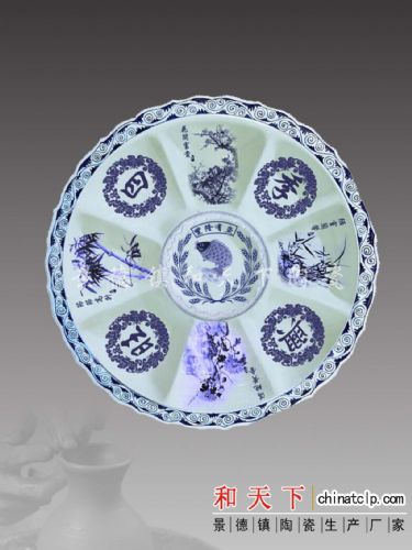景德镇家生产供应陶瓷大瓷盘,景德镇陶瓷瓷厂生产的陶瓷大瓷盘酒店大堂装饰、酒店餐厅巨型器皿、大堂隔间屏风、工地竣工纪念、名人肖像馆纪念等。