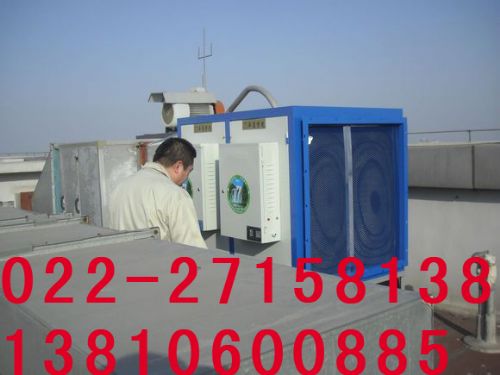高碑店市馨云环保设备有限公司生产的低温等离子加动态拦截油烟净化器一体机在油烟空气净化设备前端的空气入口处..