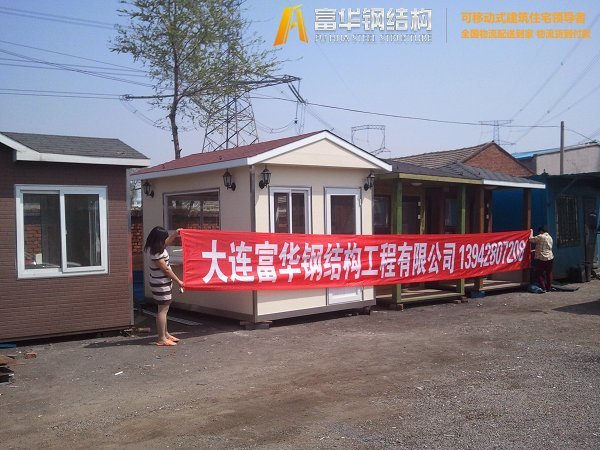 大连富华恒润实业有限公司,专业设计制作:成品活动房、岗亭、售货亭、收费亭、景点豪华服务亭、移动卫生间、箱式别墅房、集装箱房屋、钢结构厂房、库房、钢结构别墅工程等项目。本公司以“安全、优质、高效”的经营理念,坚持“敬业、团结、创新”的企业精神,遵循以“质量求生存,信誉求发展”的企业宗旨,锐意进取,采用独特工艺,生产美观大方的“隔热、轻质、时尚”的整体成品房,实用于野外作业,建筑工地,社区物管,旅游景点等。