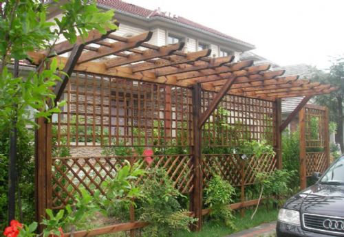 花架可应用于各种类型的园林绿地中,常设置在风景优美的地方供休息和点景,也可以和亭、廊、水榭等结合,组成外形美观的园林建筑群;在居住区绿地、儿童游戏场中花架可供休息、遮荫、纳凉;用花架代替廊子,可以联系空间;用格子垣攀缘藤本植物,可分隔景物;园林中的茶室、冷饮部、餐厅等,也可以用花架作凉棚,设置坐席;也可用花架作园林的大门。