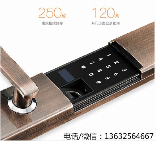 功能:指纹(电容)、密码、遥控(选配)、手机远程开锁