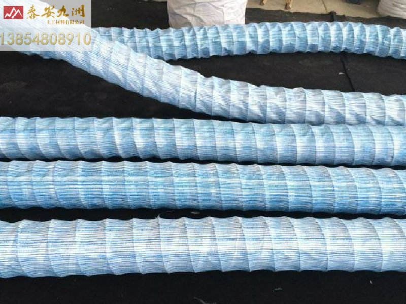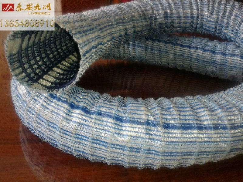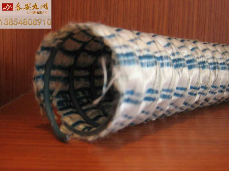 4、抗压强度高。 高碳钢支持钢圈经防锈处理后外覆一层PVC与透水材料结为一体,具有足够的抗压扁能力并可以防止倒管。