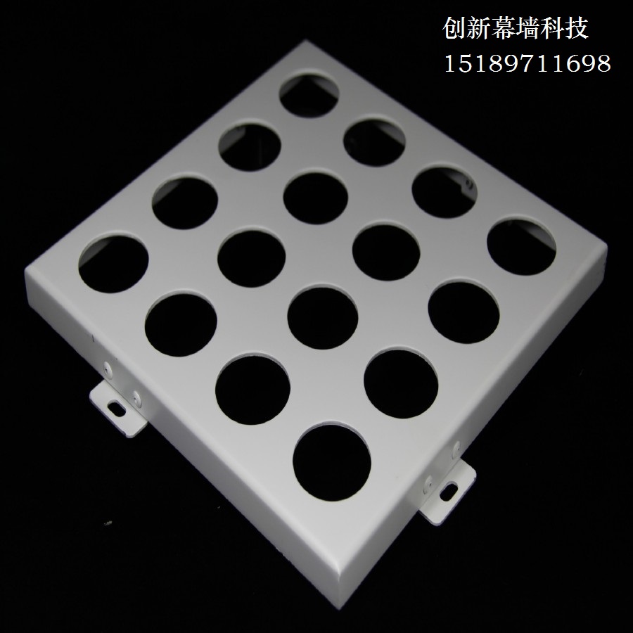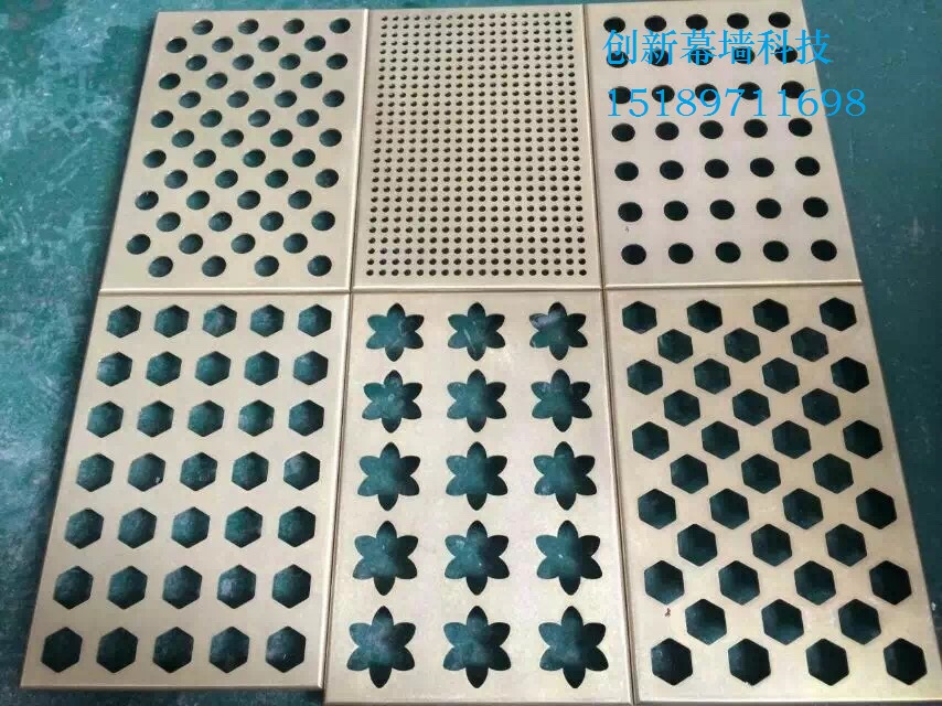 冲孔形状是决定产品的外观是否美观的一个重要参数,一般来说,冲孔铝单板的冲孔可根据实际需要设计成圆形,方形,梅花形等形状,网孔越大,铝单板的质量就越轻,但抗压力及抗拉伸力就越弱,从而影响了冲孔铝单板的应用场所。所以客户须根据自身的实际要求,按工程的需要设计网孔的大小。