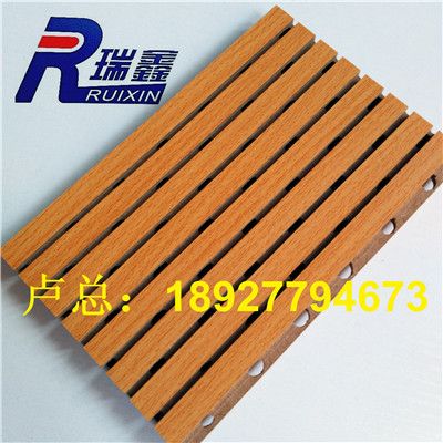木质吸音板厂家(18927794673-卢总)生产的木质吸音板,是一种在密度板的正面开槽、背面穿孔的狭缝共振吸声材料。常用于墙面或天花装饰。芯 材:12mm,15mm或18mm厚的MDF板材。木质吸音板通常用密度为720kg/cu.m的二级MDF 板料做成,亦可根据用户要求使用一级的MDF板料,他们不仅仅具有很好的吸音降噪效果,更是多种多样,具有很强的装饰效果,同时阻燃,防潮等等特点让其在声学装饰材料上占有很大的地位。