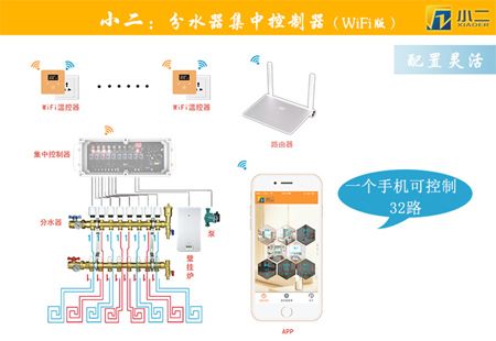 用于分水器的集中控制,通过手机分别控制每个房间的温度。