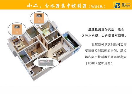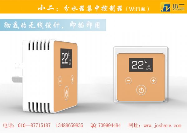2. 完全的无线设计,即插即用。温控器和集中控制器之间使用无线通讯,温控器和手机之间采用WiFi通讯。