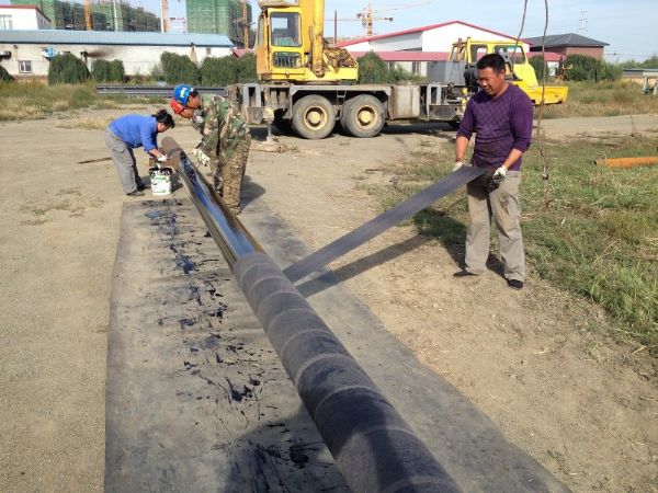 7、防腐管保护。防腐层未达到实干时不得搬运防腐管。即便防腐层达到实干,此时防腐层机械强度仍较差,应采取一定的保护措施,装卸防腐管时,只能用软质吊带与防腐层接触。堆放防腐管时,管两端和中部应放置沙袋或木垫,使管外壁之间及管面与地面之间相互隔离。防腐管应及时埋地使用,如存放超过一个月,应用苫布覆盖,避免日晒雨淋,如存放超过半年,使用前宜刷涂一层环氧煤沥青面漆。