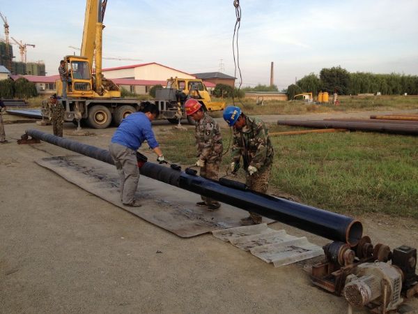 7、防腐管保护。防腐层未达到实干时不得搬运防腐管。即便防腐层达到实干,此时防腐层机械强度仍较差,应采取一定的保护措施,装卸防腐管时,只能用软质吊带与防腐层接触。堆放防腐管时,管两端和中部应放置沙袋或木垫,使管外壁之间及管面与地面之间相互隔离。防腐管应及时埋地使用,如存放超过一个月,应用苫布覆盖,避免日晒雨淋,如存放超过半年,使用前宜刷涂一层环氧煤沥青面漆。