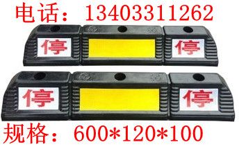 规格:500*150*100(直角定位器)规格:500*130*100mm(停字定位器)规格:600x120x100(新款定位器) 橡塑车轮挡车器规格为550*150*100