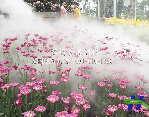 温度控制功能 恒鼎瑞达人造雾系统工作时可喷洒出大量的微小水颗粒,这些微小水颗粒极易跟周围环境中的空气结合,蒸发。在蒸发的同时可以快速吸取周围环境的热量,从而有效地控制局部地区的温度,起着调节温度的作用。 增湿、除尘功能 雾森系统工作时喷洒出大量微小雾粒散发在周围的空气中,使空气中饱含水汽起着增湿的作用。由于雾粒直径非常小,可长期飘逸于空气中,当一颗颗雾粒碰到空中悬浮的尘埃时,就会附着在尘埃上,雾喷景观公司雾喷景观公司雾喷景观公司渐渐融为一体。当空气中悬浮的尘埃重量增加到一定程度
