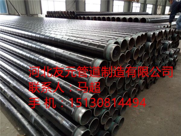 防腐层对于埋地管道的寿命来说是至关重要的,同样材质的管道,有的埋在地下几十年不腐蚀,有的几年就发生泄露。就是因为它们采用了不同的外防腐层。 基本内容编辑 3PE防腐钢管: 管道三层PE防腐结构:*一层环氧粉末(FBE>100um),第二层胶粘剂(AD)170~250um,第三层聚乙烯(PE)1.8~3.7mm.三种材料融为一体,并与钢管牢固结合形成优良的防腐层。(φ30mm-φ1020mm) 三层聚乙烯防腐是目前国内外埋地管道外防腐主要技术体系之一。其具有防腐性能好、吸水率低、机械强度高等性能,近年来在国内埋地输水、输气、输油道管上获得了越来越广泛的应用。