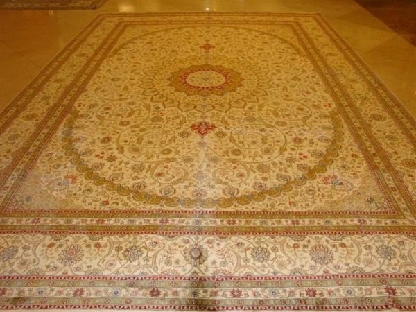 地毯,是以棉、麻、毛、丝、草等天然纤维或化学合成纤维类原料,经手工或机械工艺进行编结、栽绒或纺织而成的地..