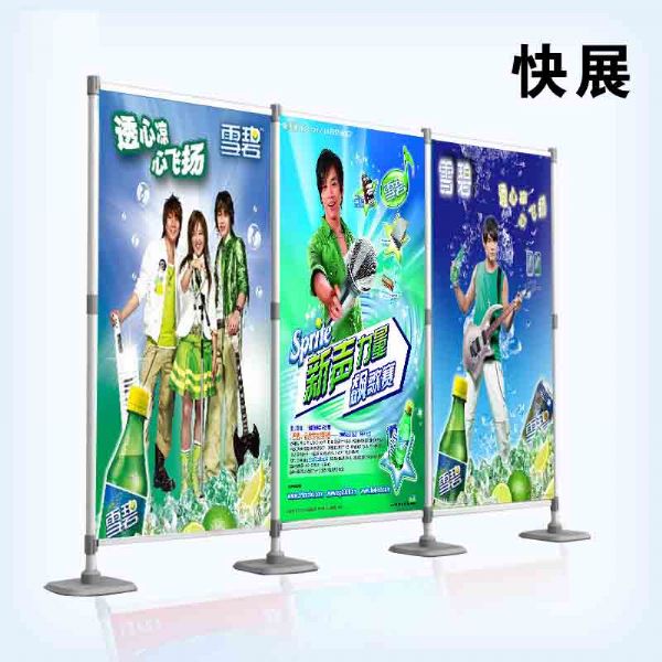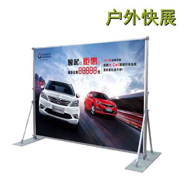 是一套可以自由伸缩的主体支杆,以横轴为广告画面悬挂载体,以层板为实物展示平台,全方位,多功能,可变性强等优点的一套快速展示系统。底盘使用优质钢材,配件采用原料ABS,环保,简洁,结实耐用,运输便利。 既可放置大幅广告画面有可摆放产品实物,是小家电,工艺品,饮料类,食品类,鞋帽箱包类等中型商品*佳的促销道具。 可以做出不同的造形,携带非常方便,安装特别简单,不需要专业人土按装,不需要任何工具就可以完成整个按装过程。是集成展览展示器材,桁架货架,商业道具等功能为一体的超越产品。画面采用热转印工艺布料,无味,*,相对于其它的广告材料更加环保、时尚,创新的快展*架是室内会议,产品发布会主题背景的*.