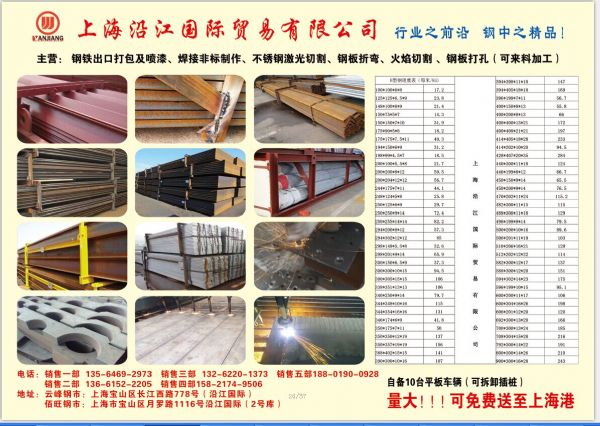我司经营范围:氧气切割、打孔-喷漆-焊接 花纹板折弯 钢材装箱/拆箱 开平/分条 (钢材预处理)钢结构加工制作(可来料加工)钢材出口打包等。
