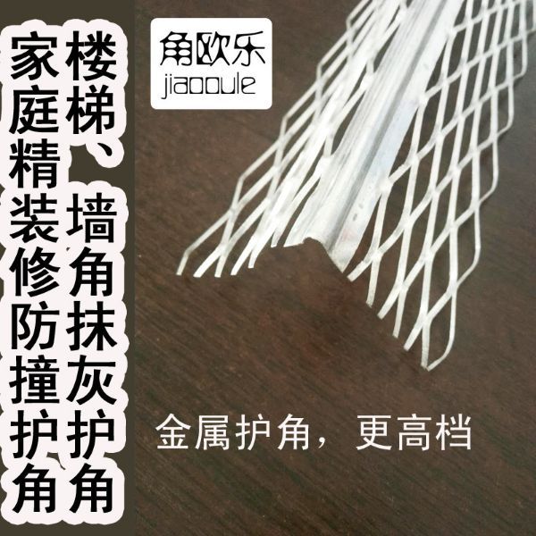 3、金属护角条分冲孔和扩张两种,不但方便打钉且使得护角条与边角部位的石膏板或者其他粘结材料结合的更加牢固。