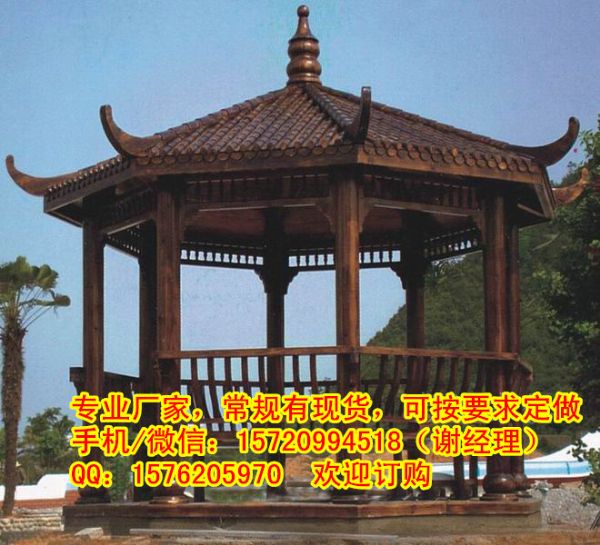 材质:防腐碳化老杉木/进口松木 规格:可定做 亭子规格:(按顾客图纸定制) 制作工艺:全榫卯结构 价格不..