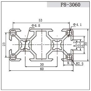 30*60  Al(6063-T5)  2  5.93  21.35  3.95  7.12  P8-3060 - 天津艾普斯工业铝型材股份有限公司