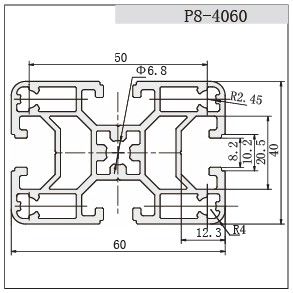 40*60  Al(6063-T5)  2.9kg/m 14.32  29.59  7.16  9.86 P8-4060 - 天津艾普斯工业铝型材股份有限公司