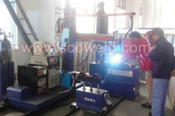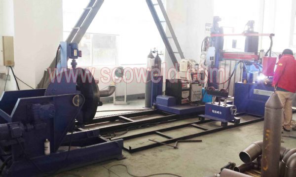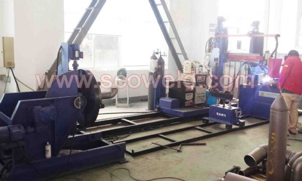 采用龙门式焊接机+卡盘式变位机+驱动滚轮组+焊接电源+配套托架等: