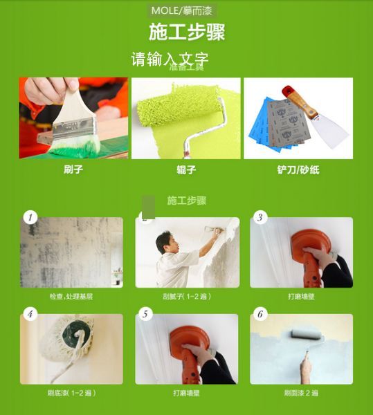 按照先施工木器漆,待干燥后再施工乳胶漆的施工顺序来操作。为保证*佳的涂装效果,请有效的分隔、覆盖和遮蔽木制品与墙面的区域。