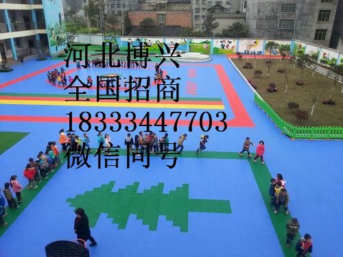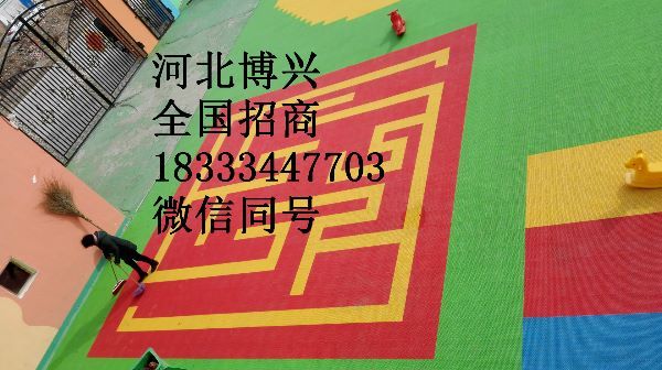 河北博兴公司郑重承诺:我公司研发的所有悬浮地板均采用纯原包料、添加进口色母。可免费设计各类幼儿园场地图案。质保三年不褪色、五年不老化,签约保证质量,博兴悬浮拼装地板值得信赖!