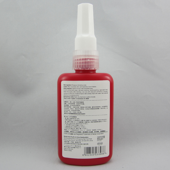 可用于具有惰性的材料表面(例如不锈钢和电镀表面),溶油性特好;乐泰243是一种单组分,触变性,具有耐机油性、中强度,抗热老化性能佳,厌氧型螺纹锁固胶;用于M20以下螺纹的锁固与密封。