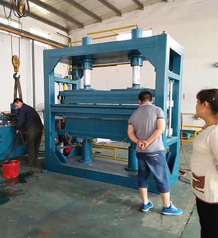 1、液压机采用单套液压系统,配套双模具的方法,设备从上料、给料、进版、模压、脱模、出版,全部实现自动化,一次成型保温板2块。