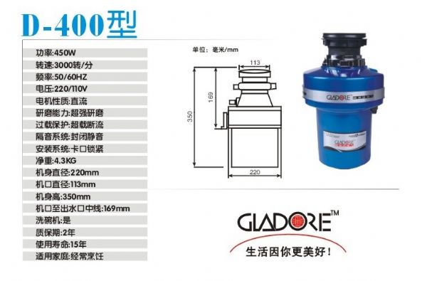 格莱达A系列‘静博士’食物垃圾处理机 垃圾处理器 垃圾处理机 碎骨机 粉碎机