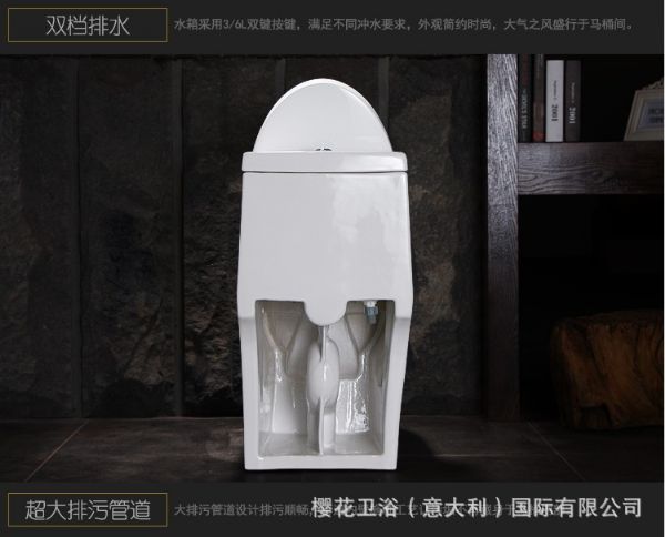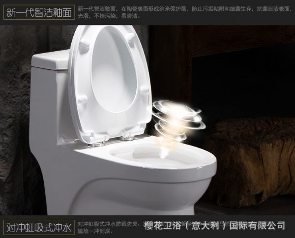 虹吸款式管道全面灌釉,彻底防止生臭味和堵塞,水箱全面喷釉,容易清洗不藏污垢