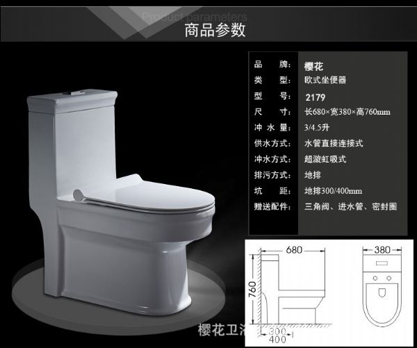 1、座便器是节水环保的新产品,座厕均采用6升节水型冲水系统,更有3/6升双挡冲水装置,具有节水、静音、抗菌、无辐谢污染等性能。