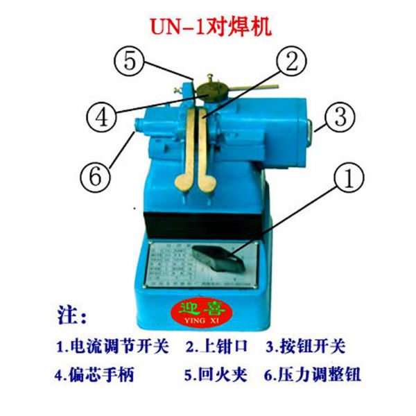 UN-1型对焊机, 外壳采用精密铸造优质合金铝,变压器采用100%全铜漆包线和电工铜排绕制,滑动部分采用直线导轨制作。性能稳定、滑动灵活、结构合理、操作方便、使用寿命长等优点。