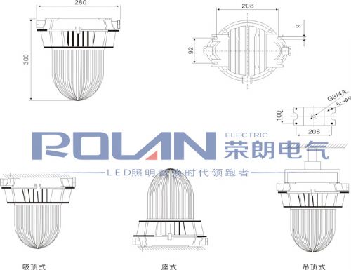 5、本产品的结构是一体式,外形美观,体积小,重量轻,维护方便。吸顶式、吊顶式、座式多种安装方式,可满足不同作业环境中的照明需求。