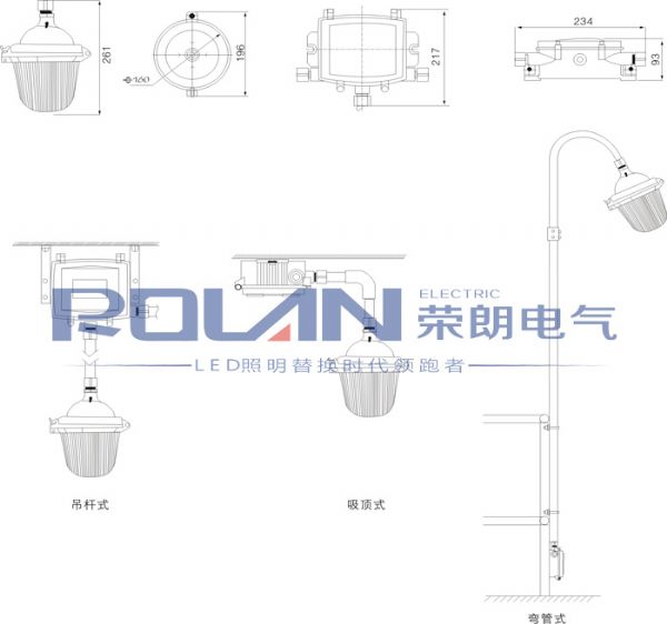 灯体:φ196x266mm 镇流器箱:234x217x93Mm